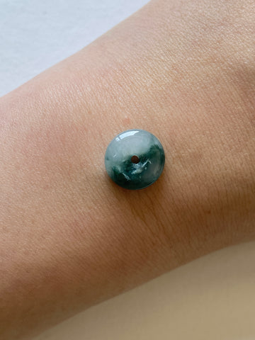 糯化飄藍花翡翠平安扣