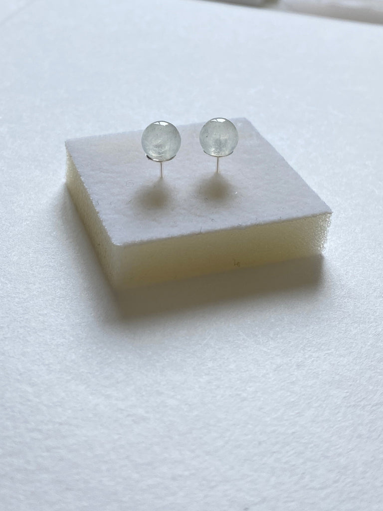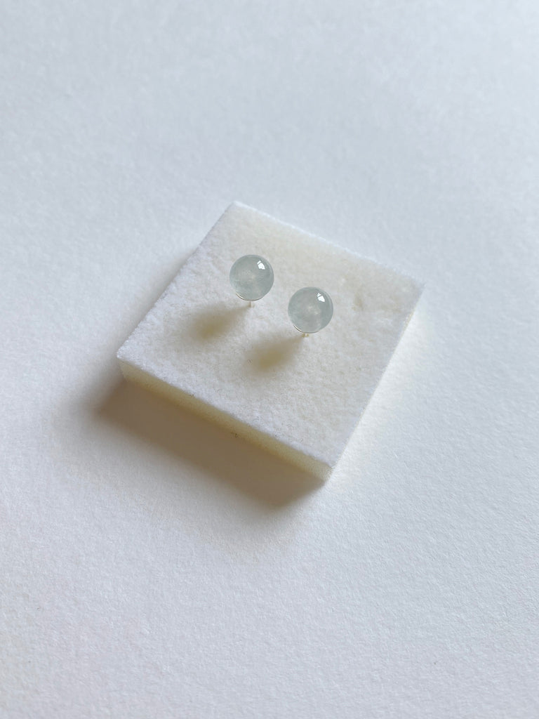 冰白翡翠珠針式耳環